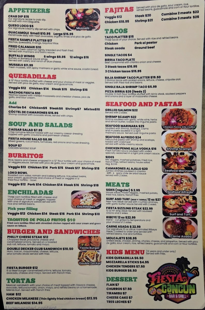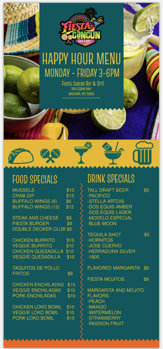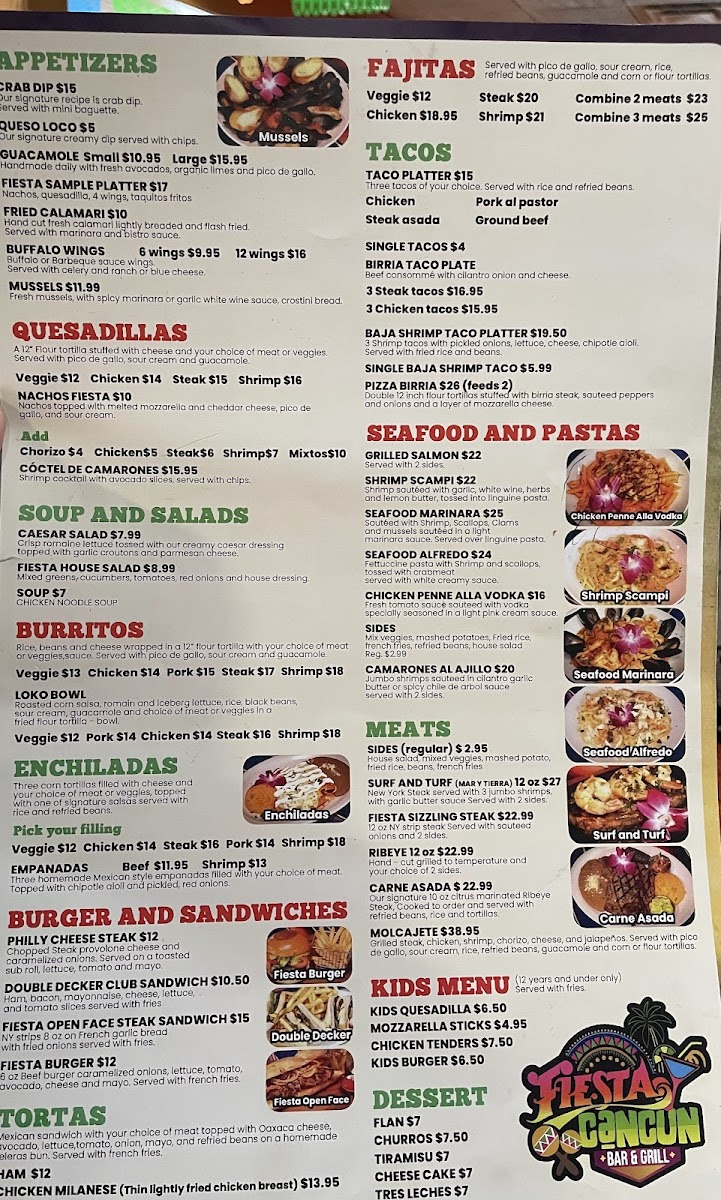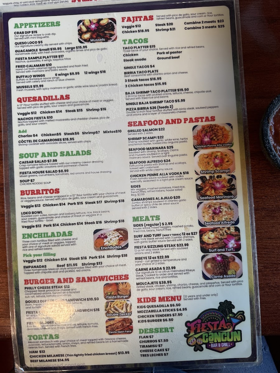 Introducing the Menu at Fiesta Cancún Bar & Grill